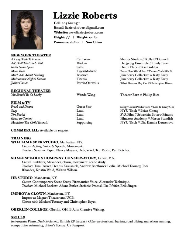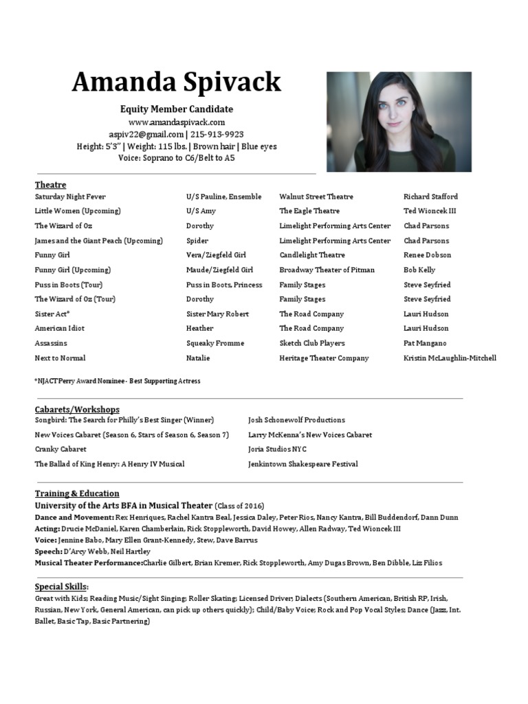 Amanda Spivack Resume PDF Entertainment Performing Arts