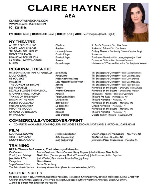 Free Printable Musical Theatre Resume Template