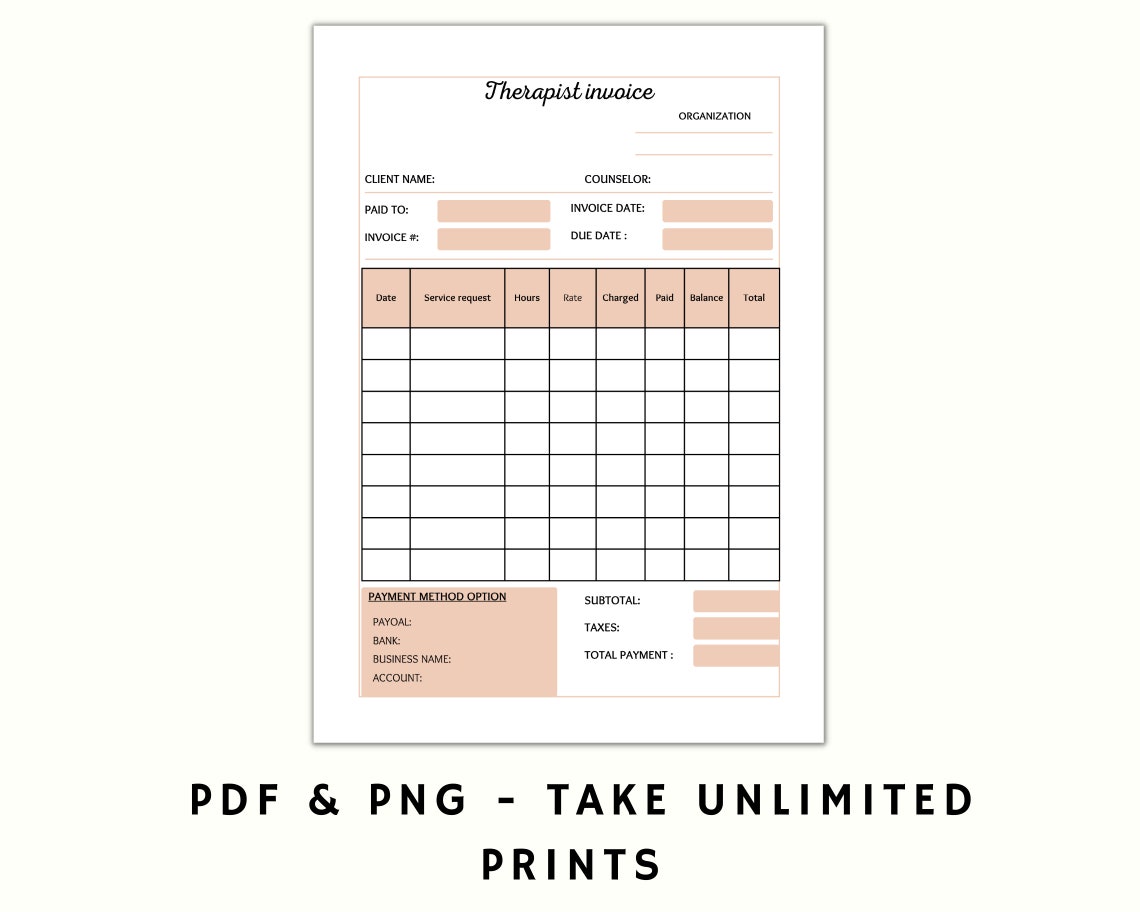 Therapist Invoice Printable Therapy Invoice Therapist Etsy