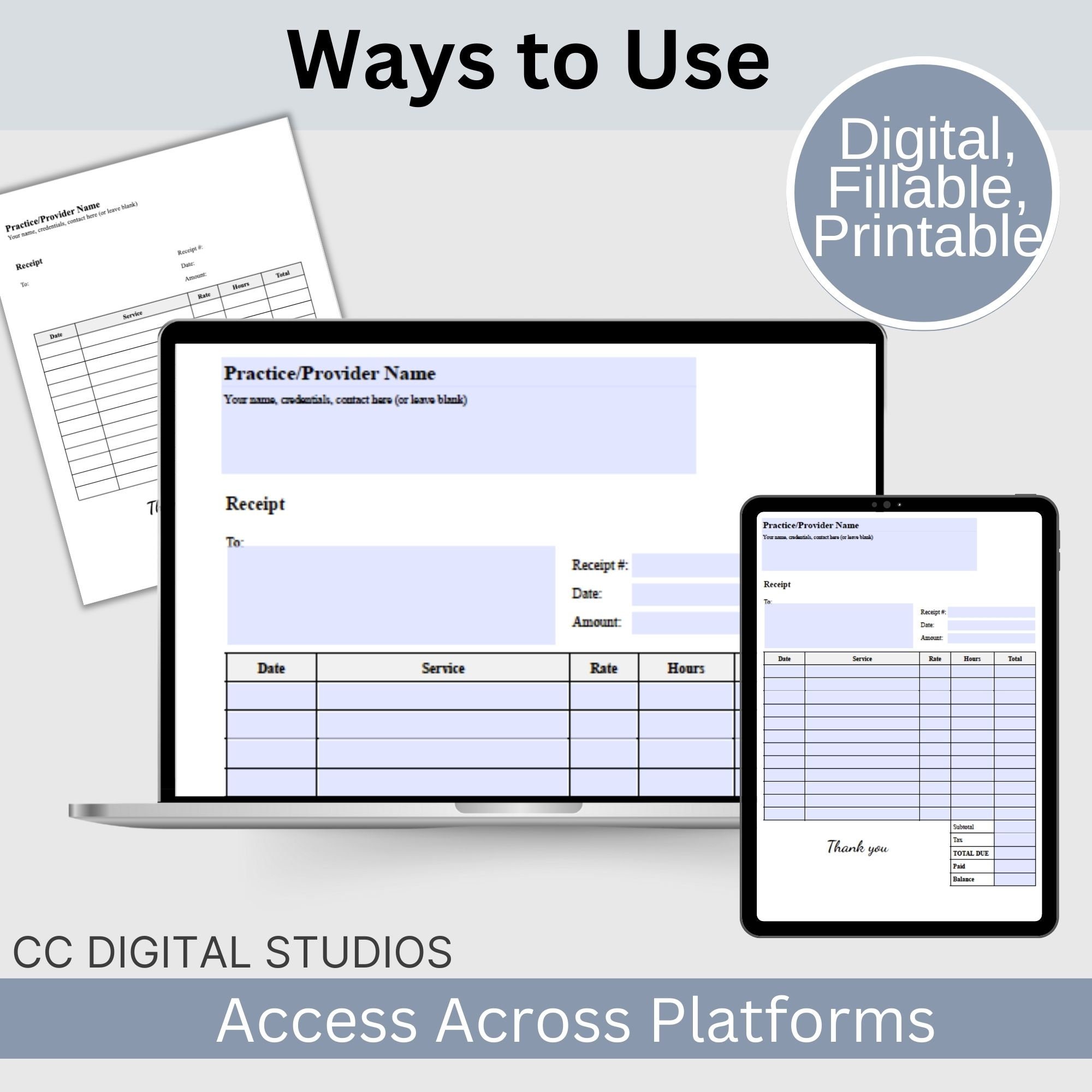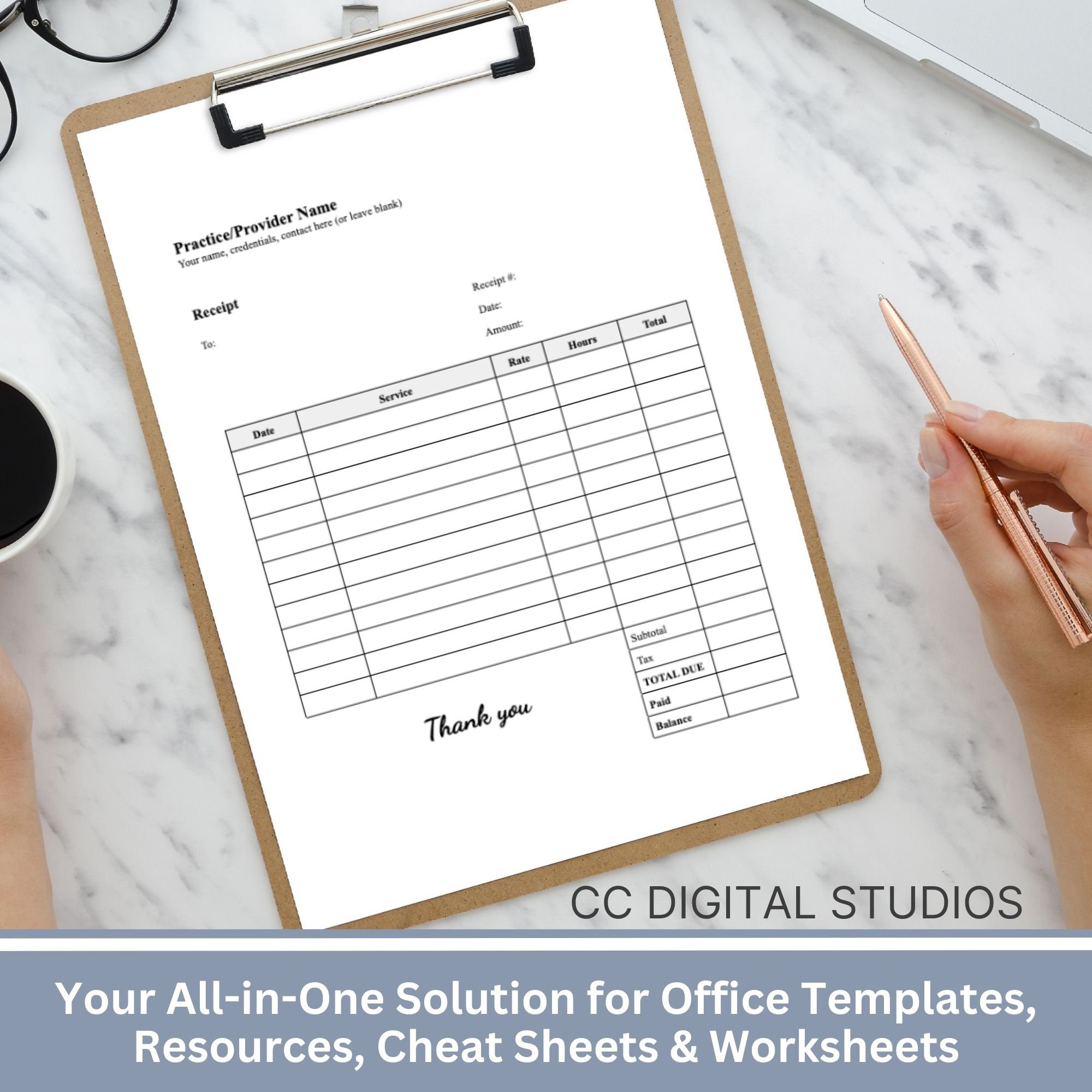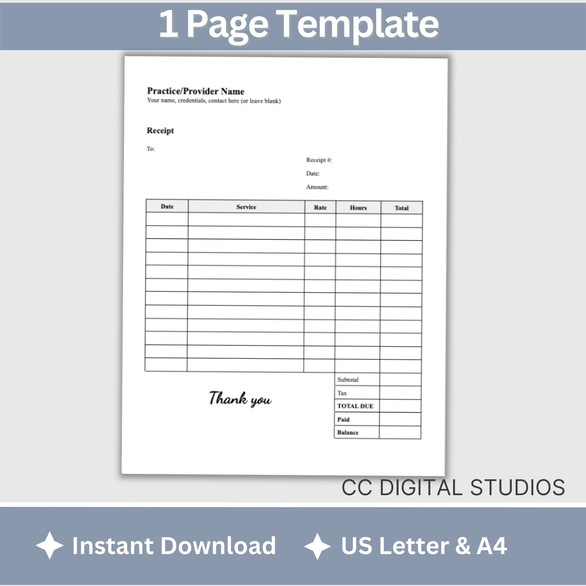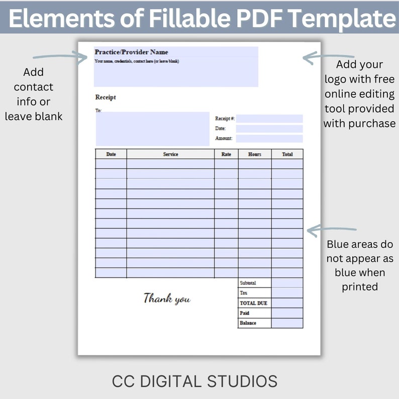 Therapist Receipt Template Editable Customizable Printable Instant