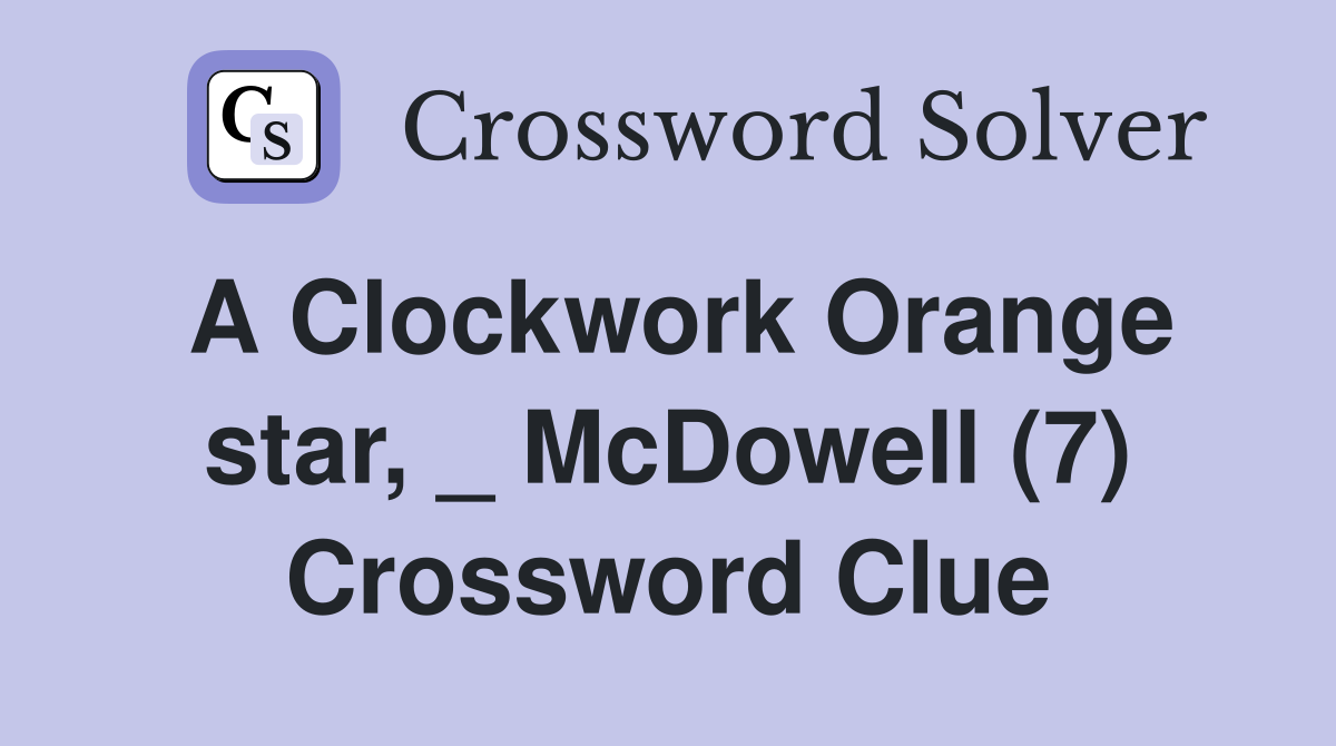 A Clockwork Orange star McDowell (7) Crossword Clue Answers