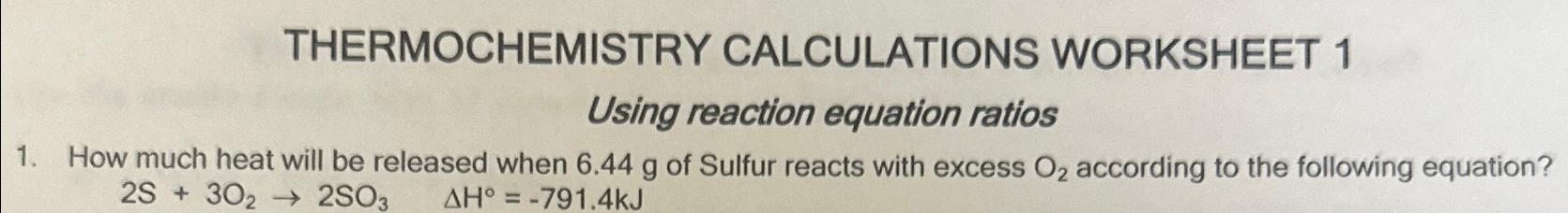Solved THERMOCHEMISTRY CALCULATIONS WORKSHEET 1 #92 #92 nUsing Chegg com