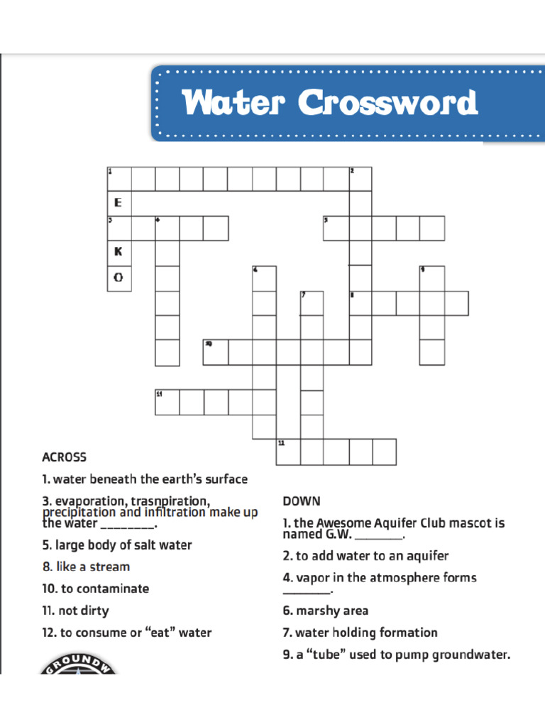 Water Crossword Puzzle Fun and Challenging Word Puzzle