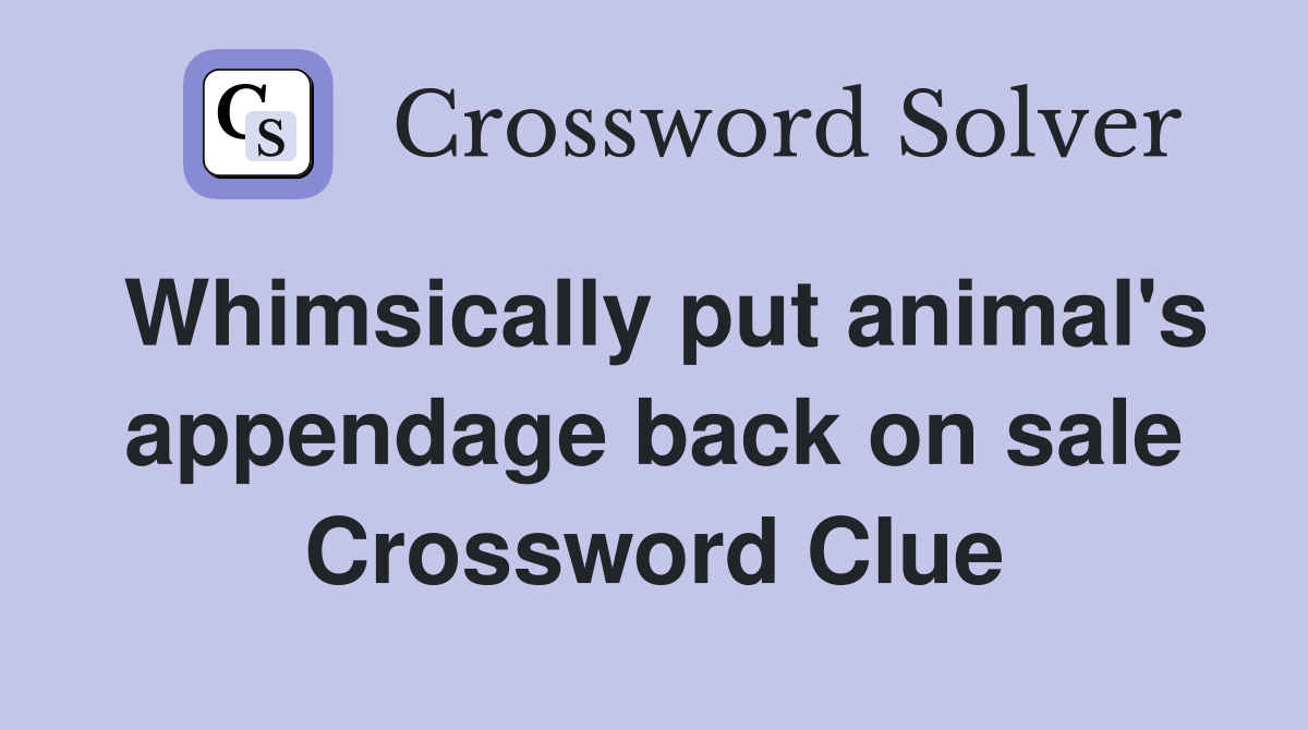 Whimsically put animal #39 s appendage back on sale Crossword Clue