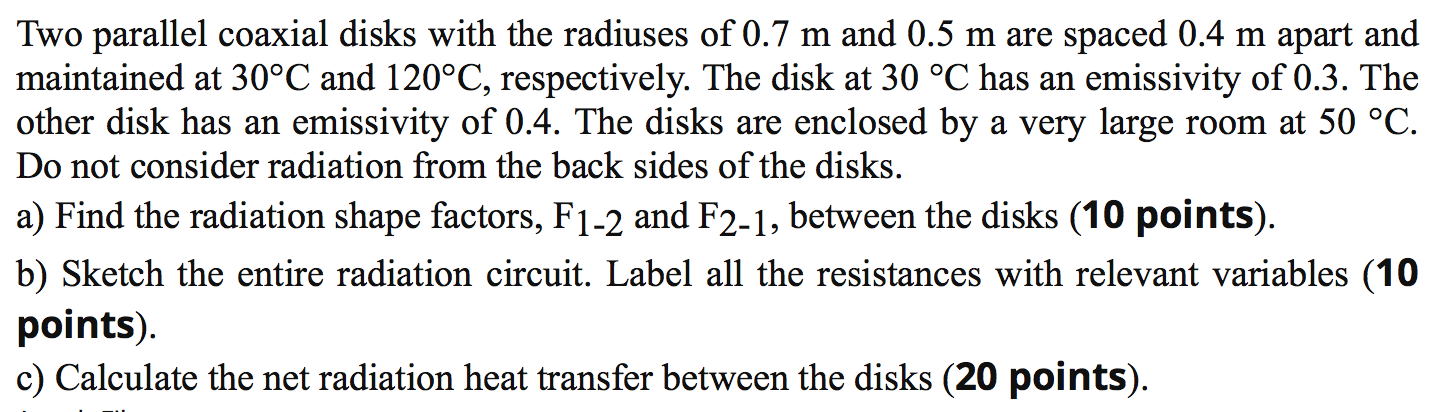 Solved Two parallel coaxial disks with the radiuses of 0 7 m Chegg com