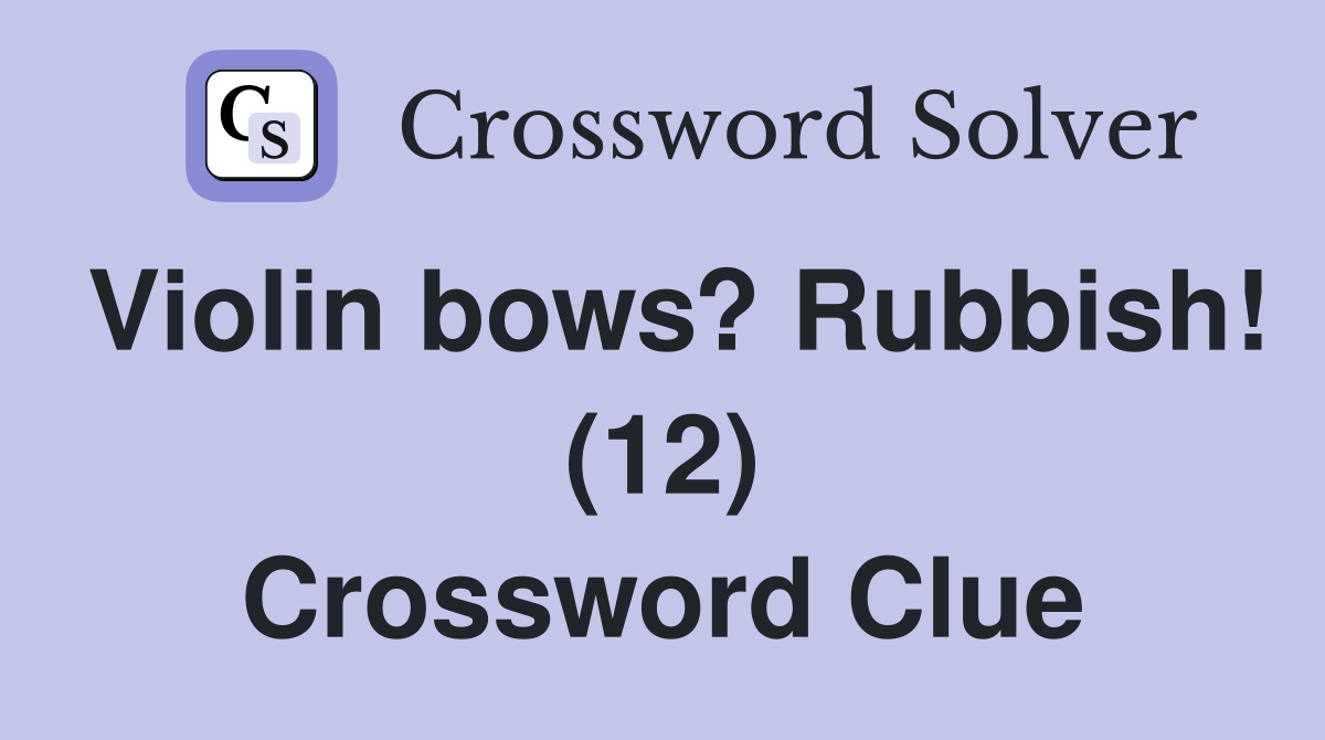 Violin bows? Rubbish (12) Crossword Clue Answers Crossword Solver