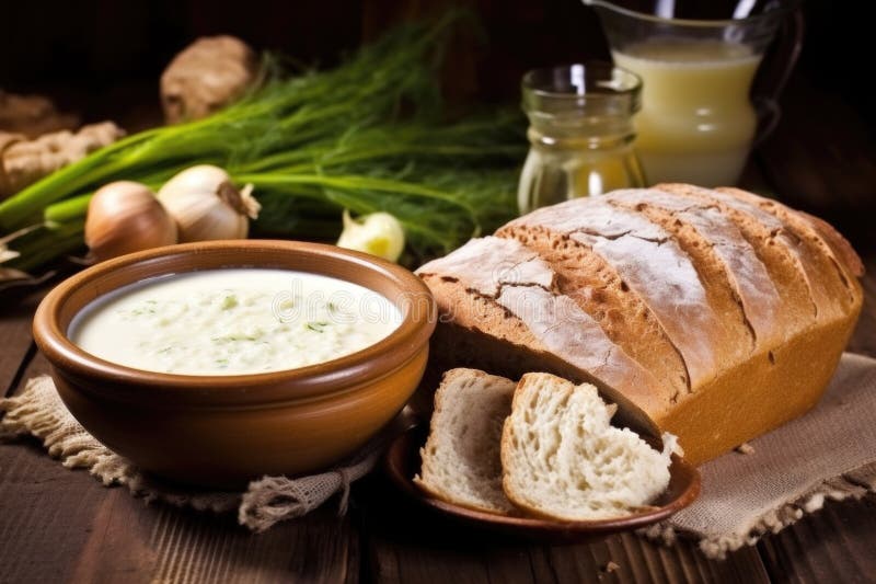 Crumbling Old Bread into a Thick Creamy Soup Stock Illustration