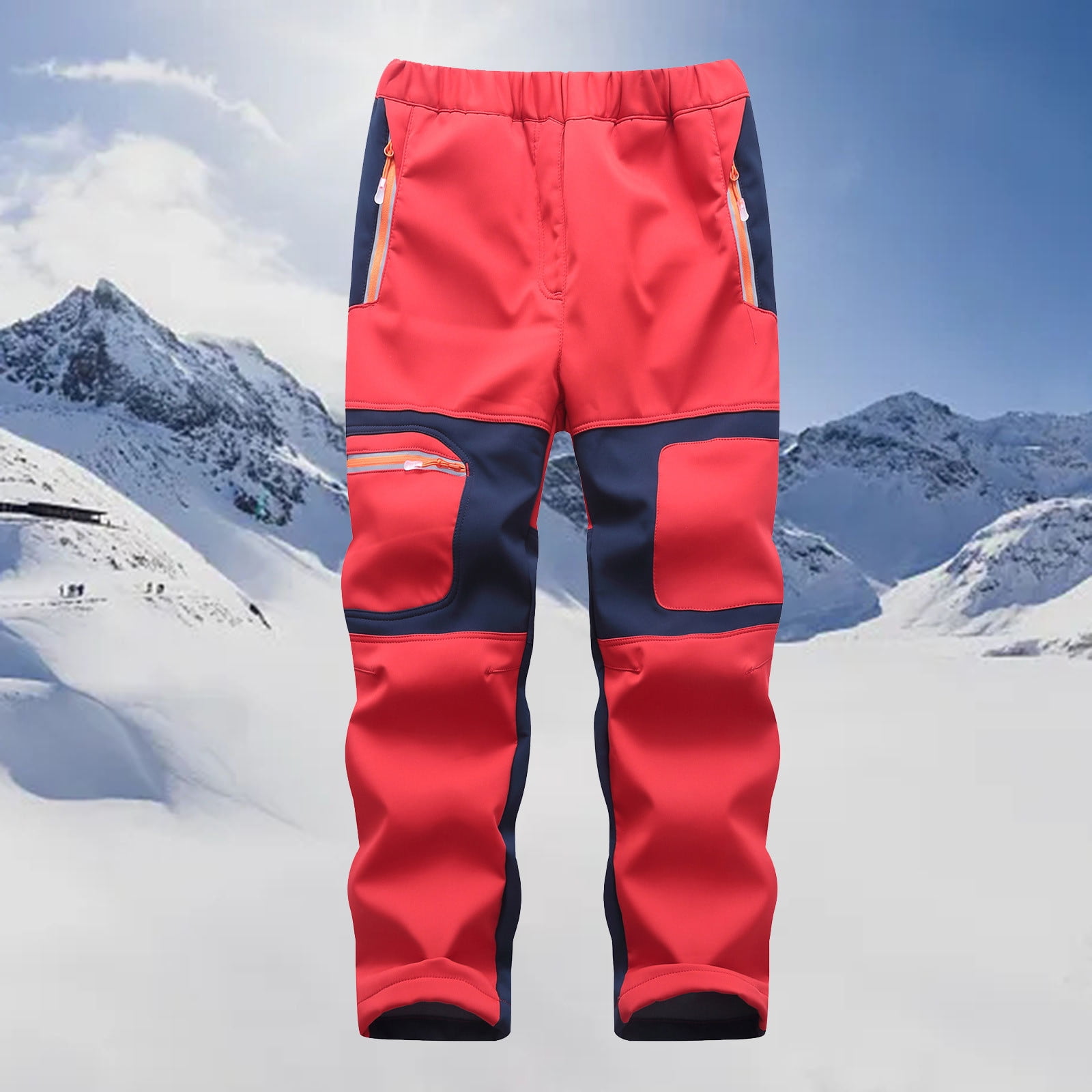 Boys Casual Pants Warm Ski Trousers for Kids Thick Pocketed Patchwork