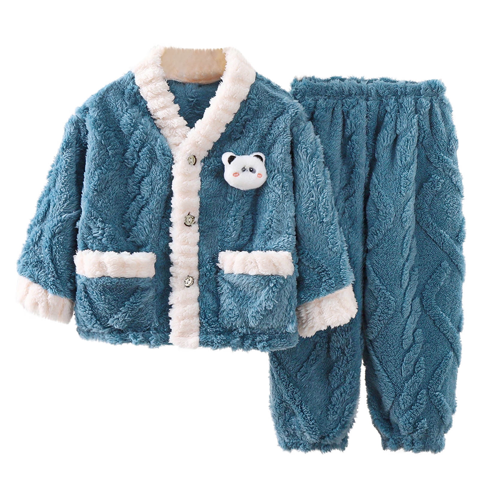 Bnwani Pajamas for Girls Long Sleeve Flannel Long Thick Home Wear Set