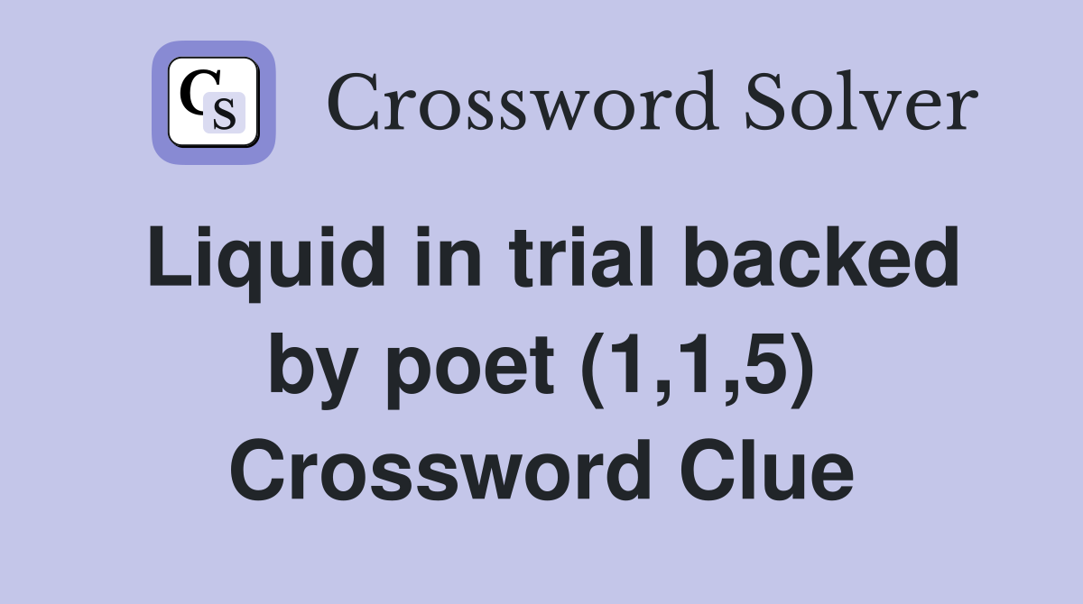 Liquid in trial backed by poet (1 1 5) Crossword Clue Answers
