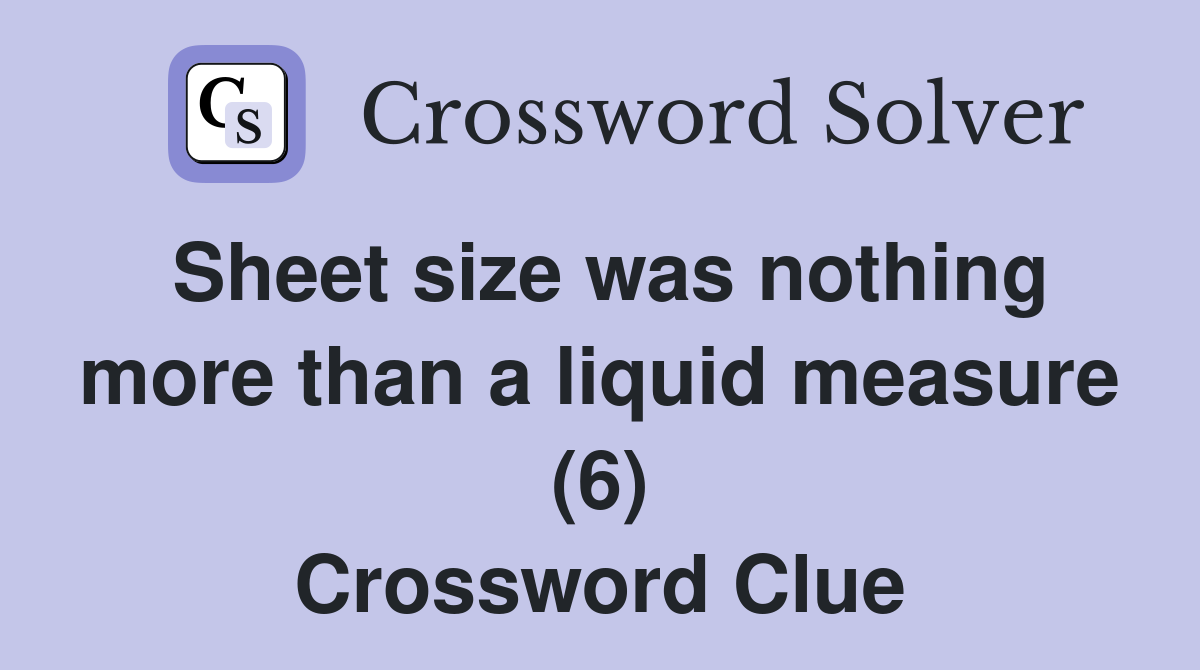 Sheet size was nothing more than a liquid measure (6) Crossword Clue