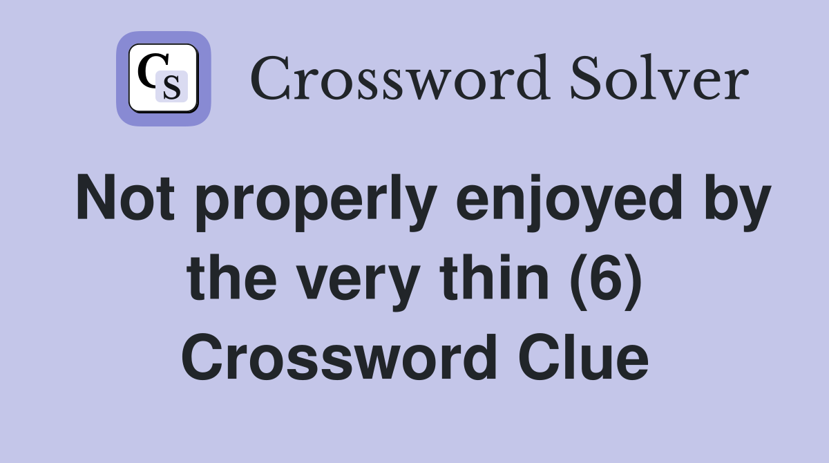 Not properly enjoyed by the very thin (6) Crossword Clue Answers