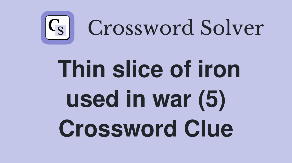 Thin slice of iron used in war (5) Crossword Clue Answers Crossword