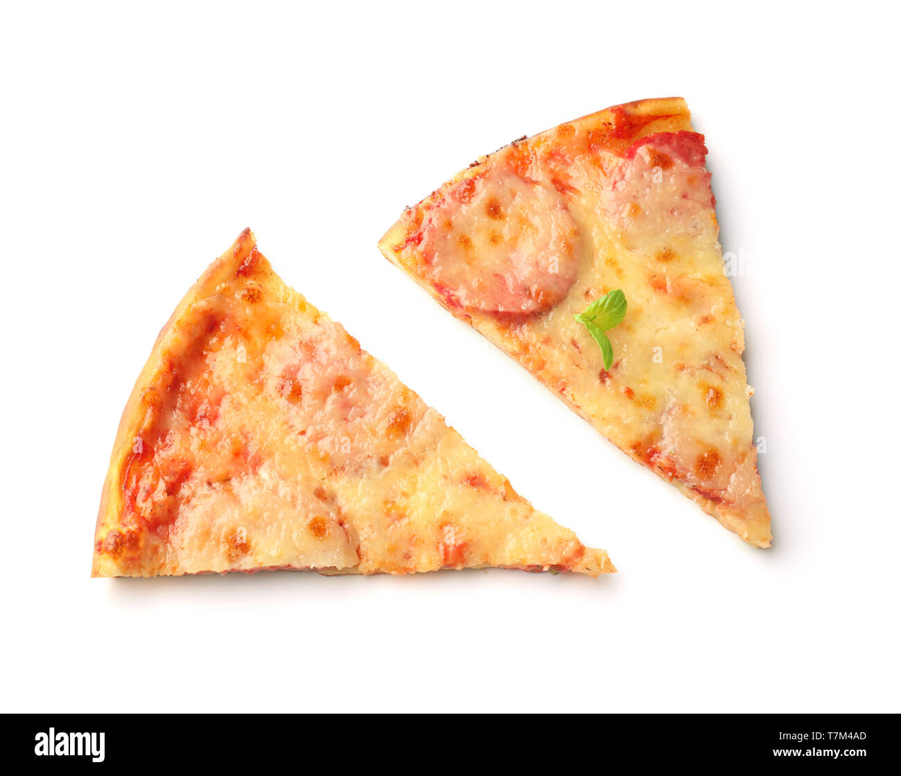 Slices of tasty pepperoni pizza on white background Stock Photo Alamy