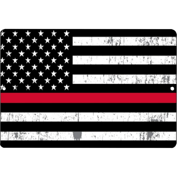Thin Red Line Firefighter Flag Metal Tin Sign Wall Decor Man Cave Bar