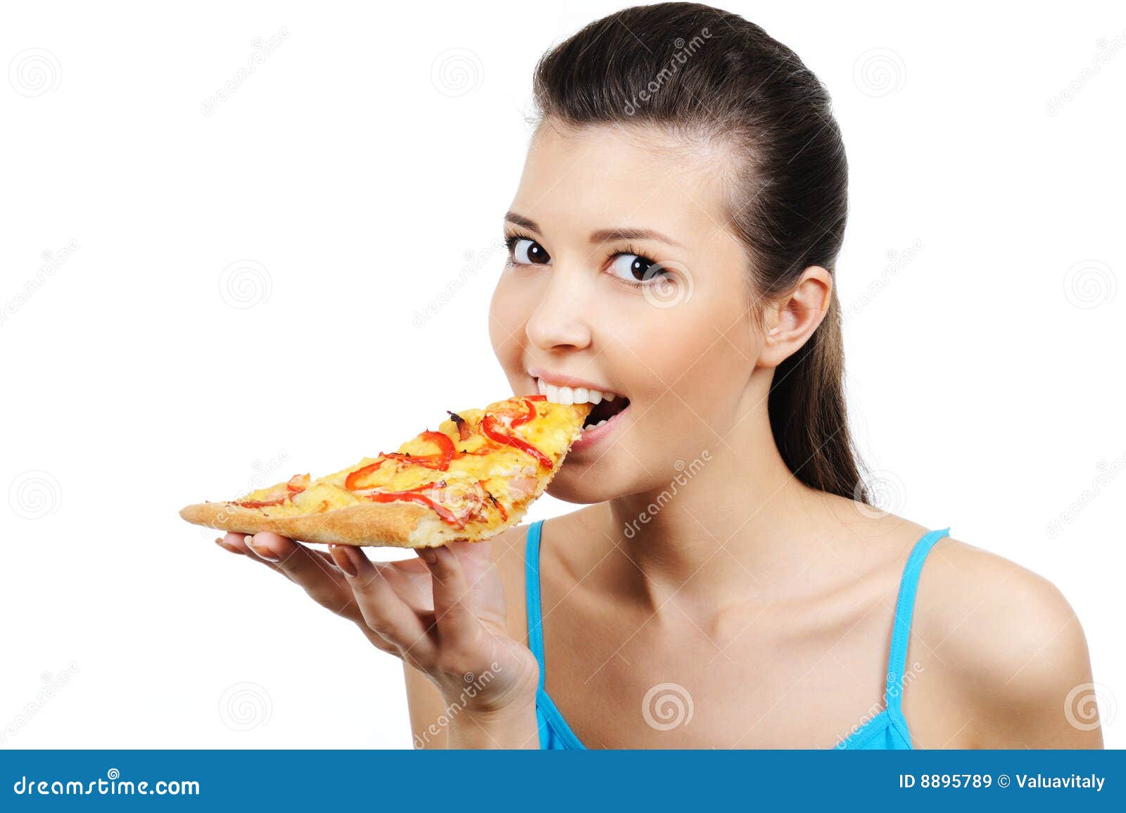 Woman eating pizza stock image Image of looking attractive 8895789