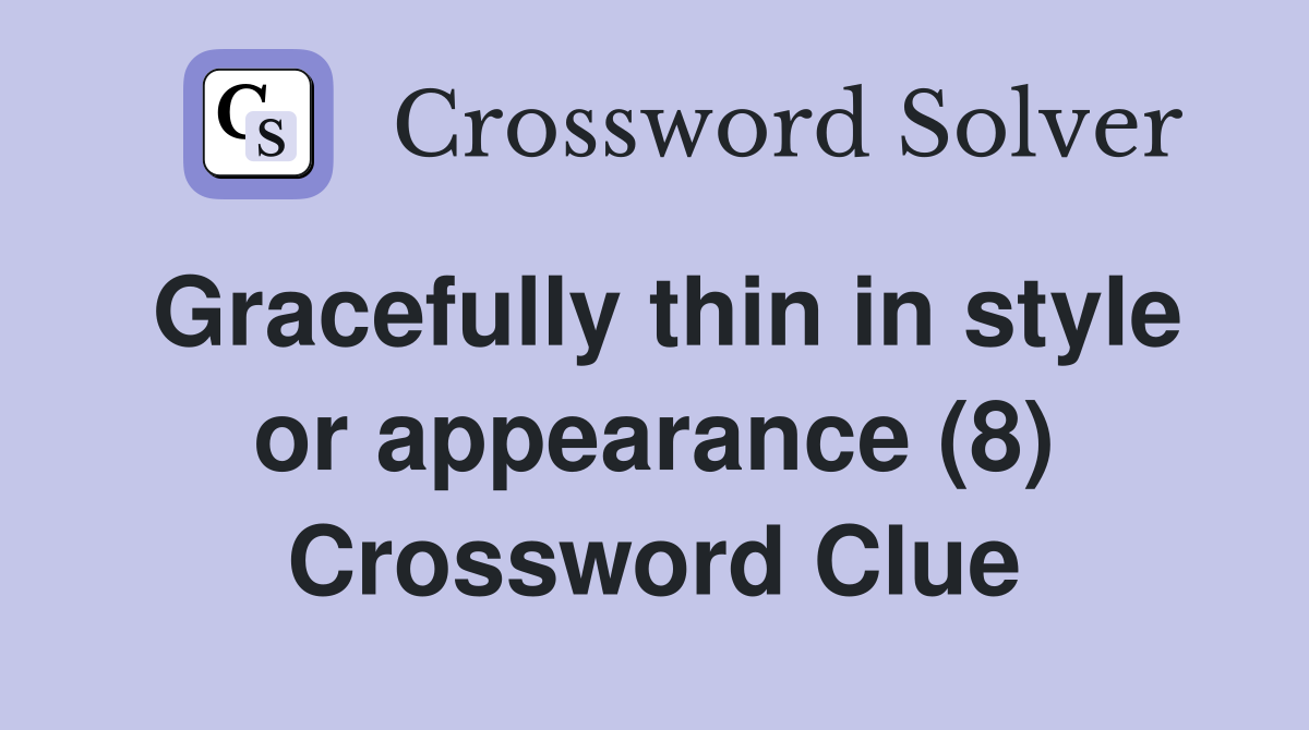 Gracefully thin in style or appearance (8) Crossword Clue Answers