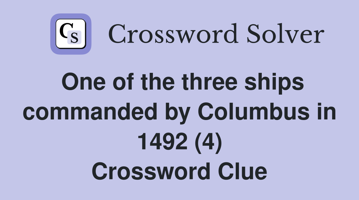 One of the three ships commanded by Columbus in 1492 (4) Crossword