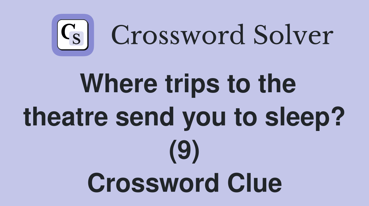 Where trips to the theatre send you to sleep? (9) Crossword Clue