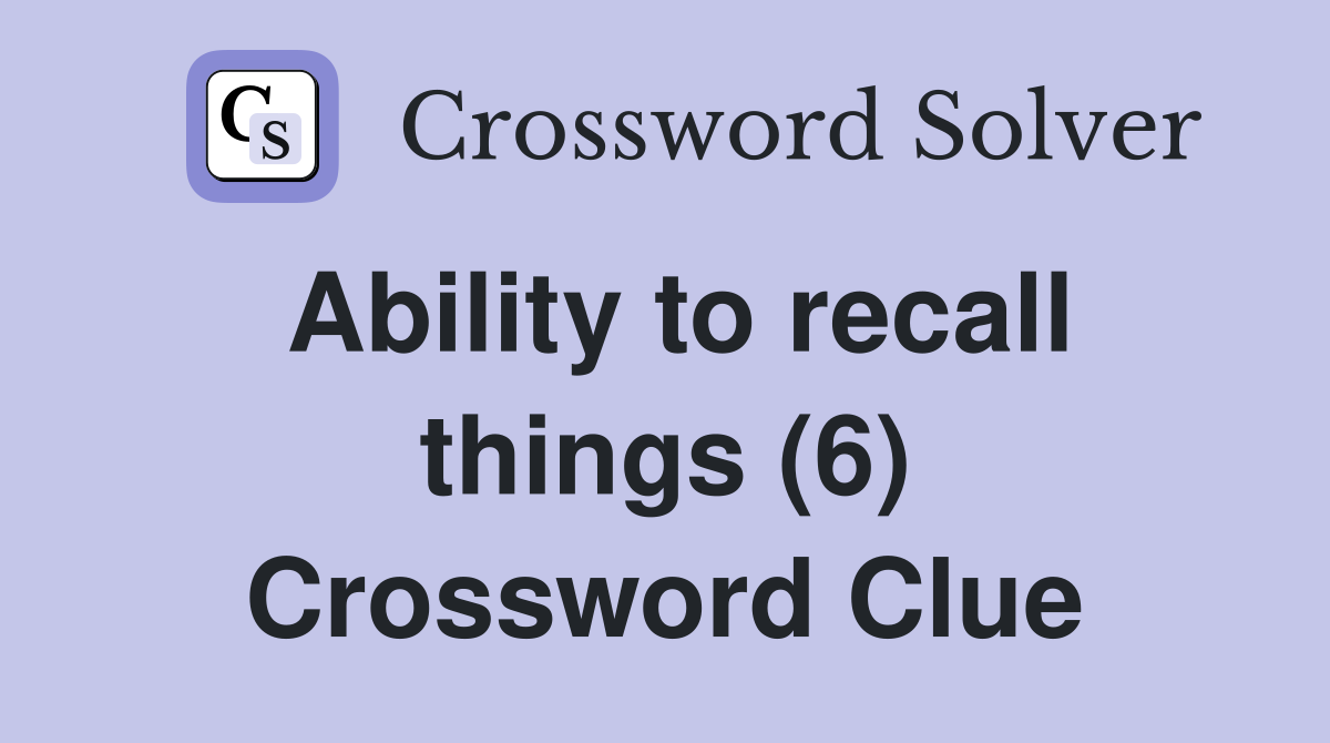 Ability to recall things (6) Crossword Clue Answers Crossword Solver