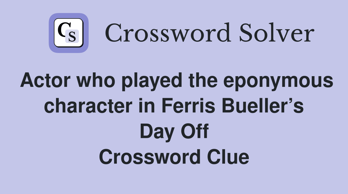 Here are some of the images for This Bueller Crossword Clue that we found in our website database.