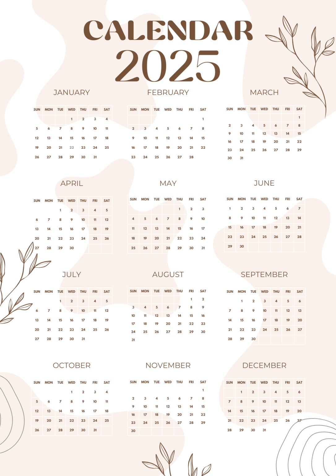 2025 Yearly Calendar Design Template Free Printable Templates