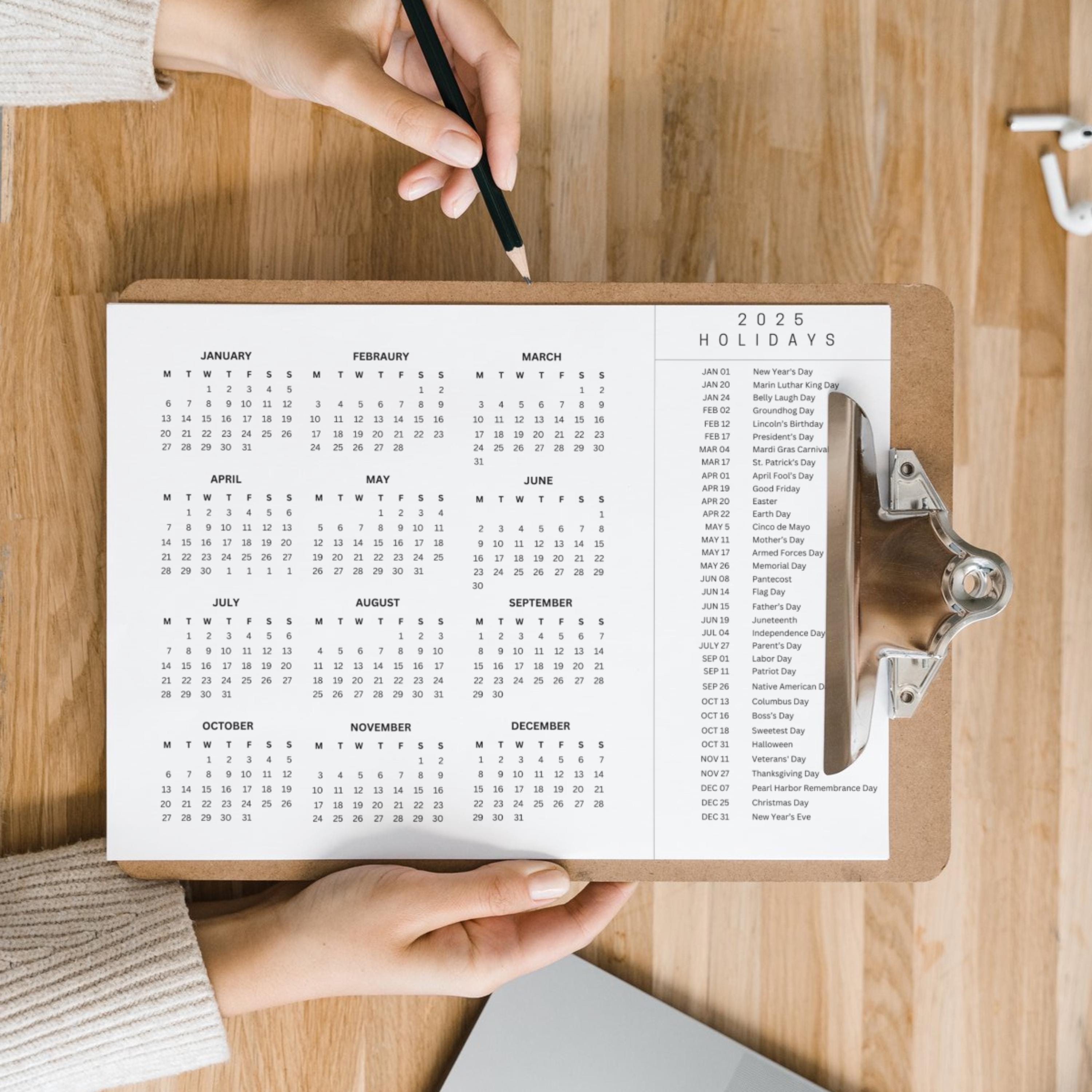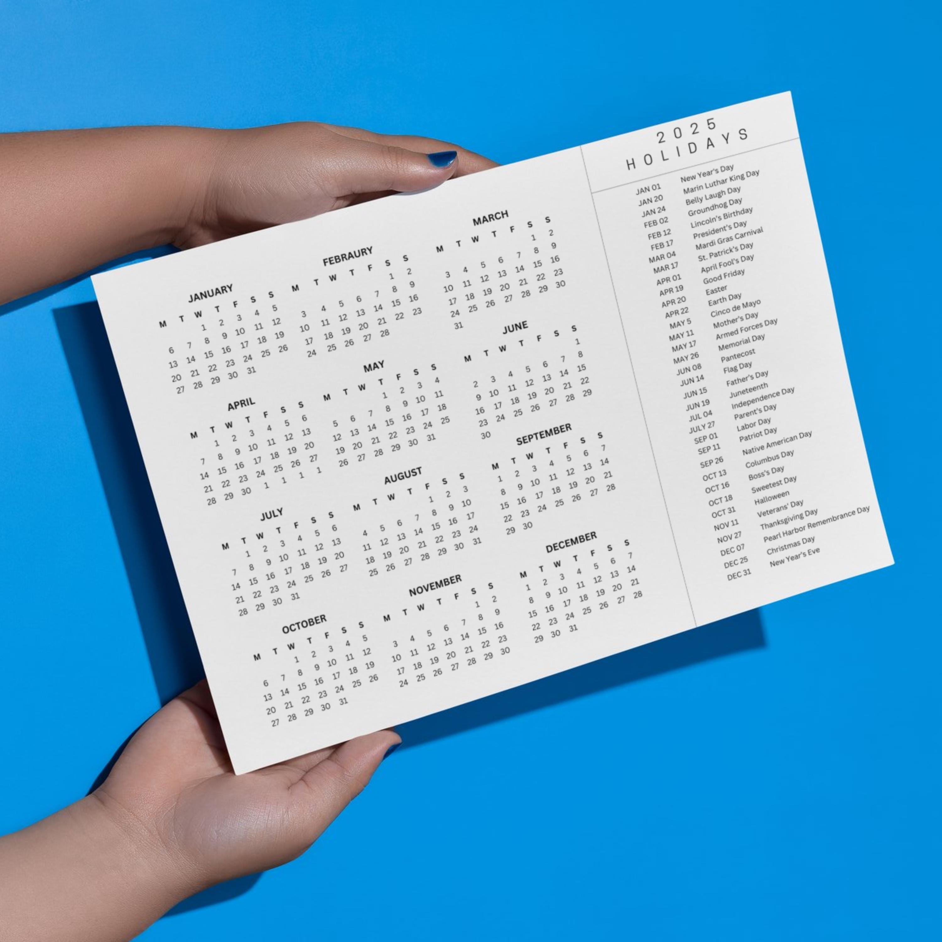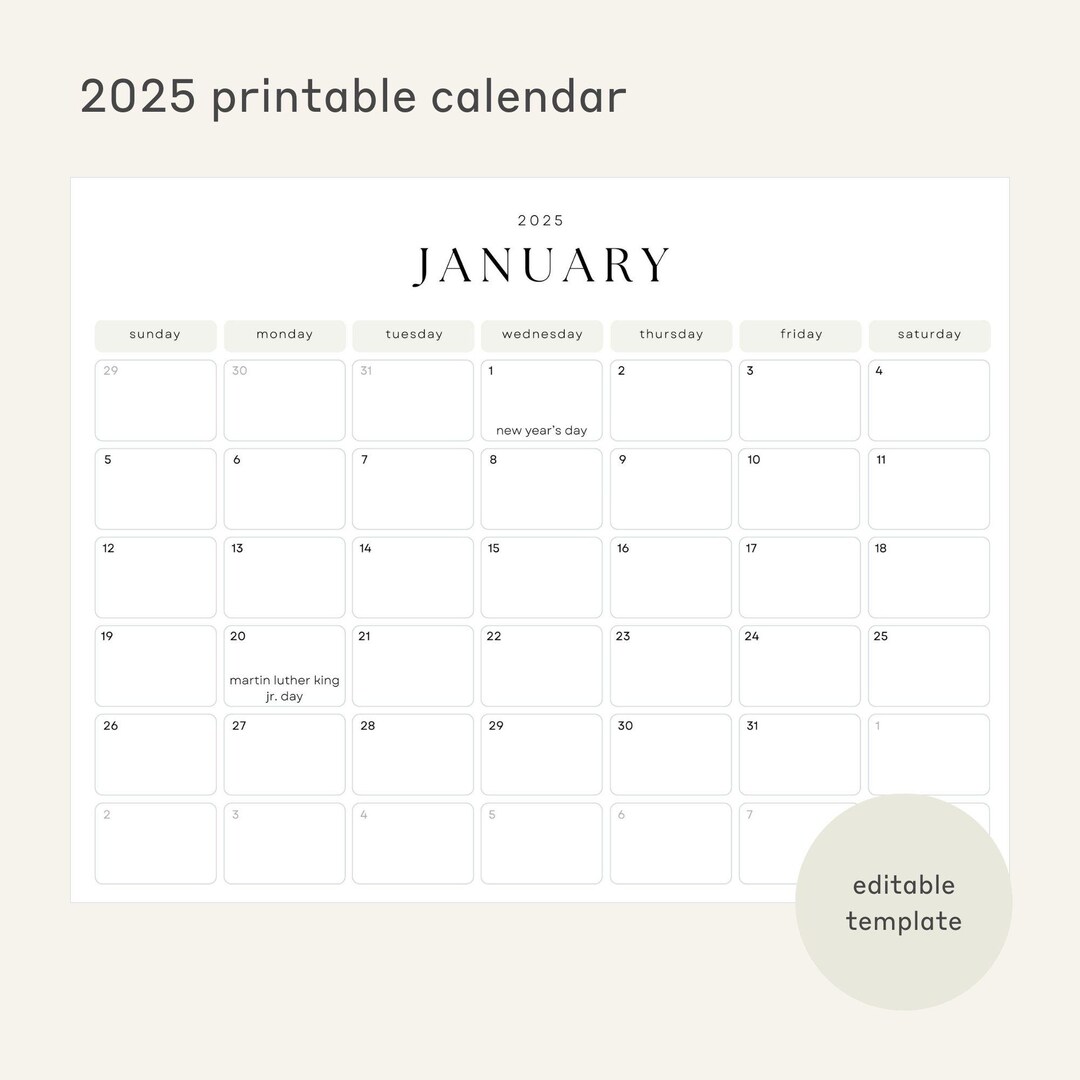 2025 Printable Calendar Calendar With Holidays Editable Monthly