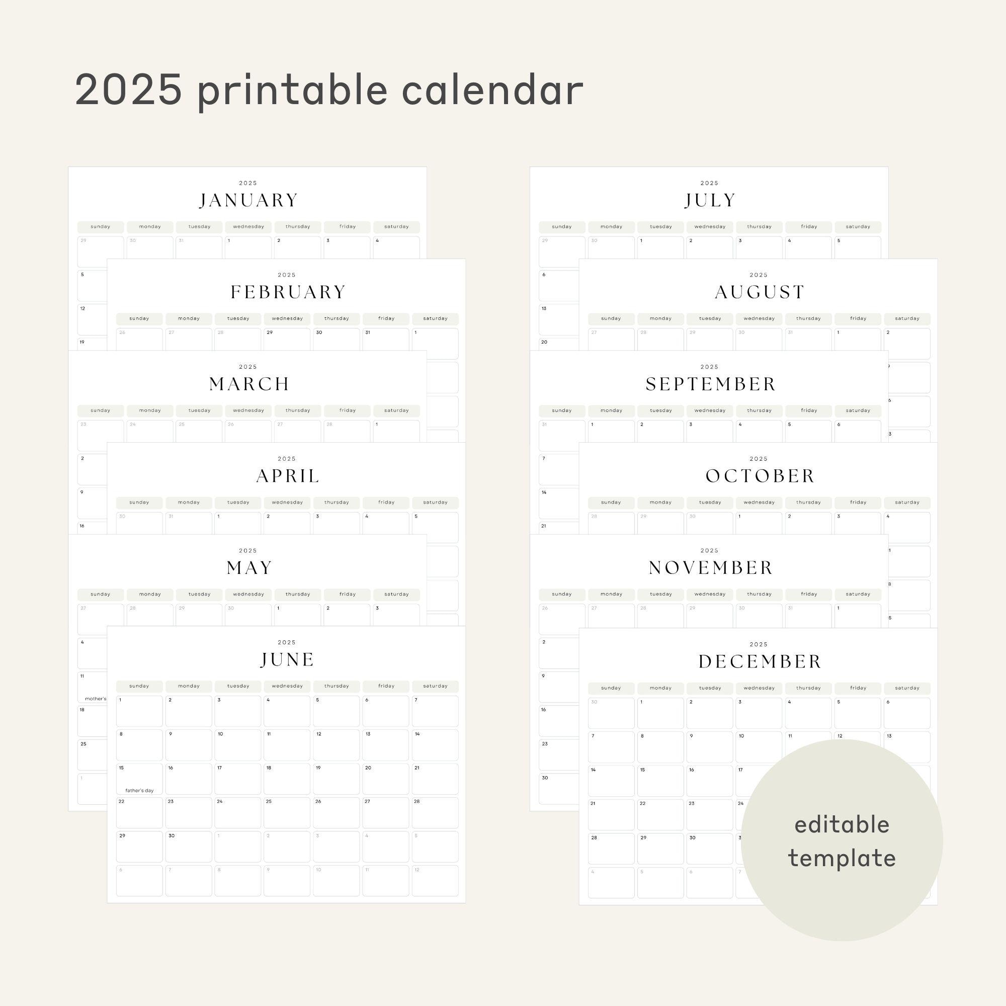 2025 Monthly Yearly Calendar With Elegant Color Design Customizable