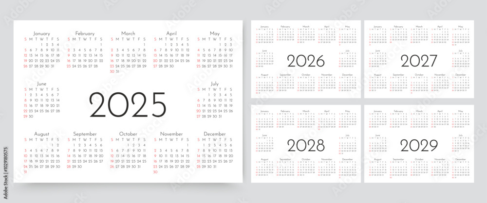 Vector de Stock Calendar for 2025 2026 2027 2028 2029 years
