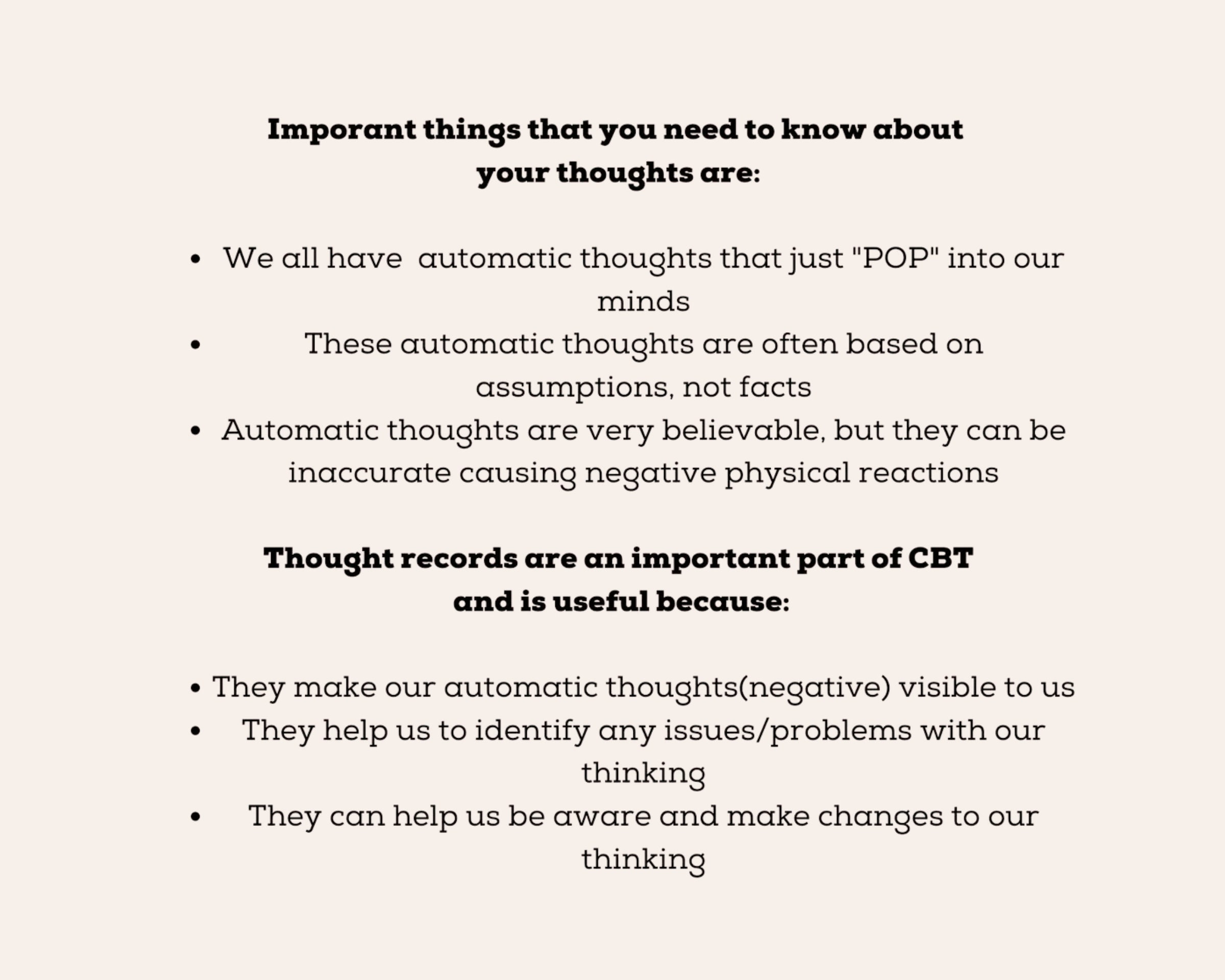 CBT Journal Thought Record Cognitive Behaviour Therapy mental health