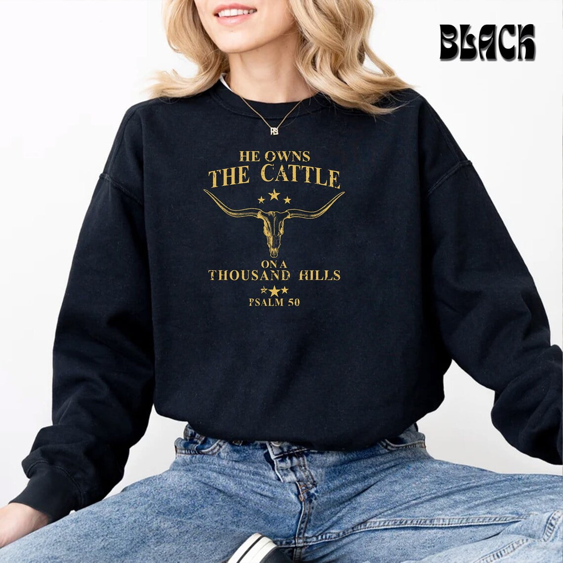 Tiny Hug He Owns The Cattle On A Thousand Hills Sweatshirt Bible Verse