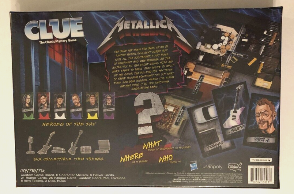 Metallica Clue Hasbro USAopoly Heavy Metal Thrash Hard Rock Game 2021