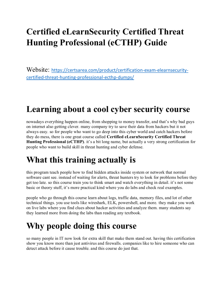 eCTHPv2 Certification eLearnSecurity Certified Threat Hunting