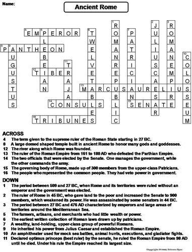 Ancient Rome Crossword Puzzle Teaching Resources