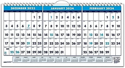 Blueline 2024 Colorful Three Month Wall Calendar 14 Months December