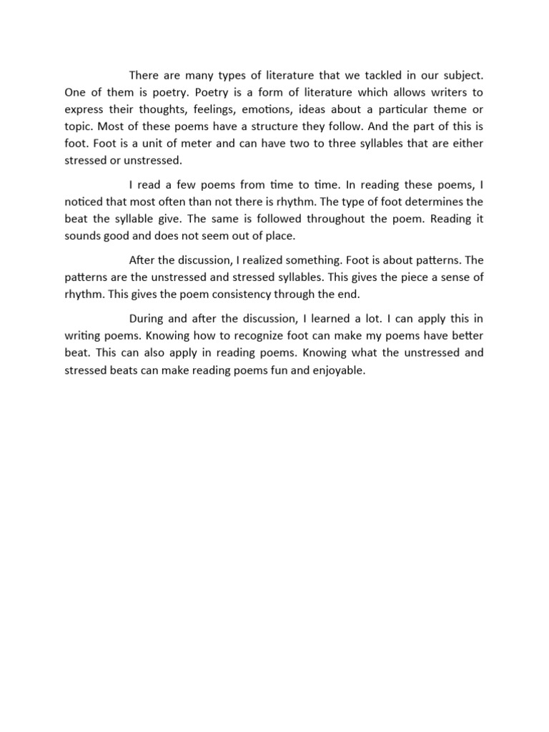 Poetic foot จังหวะเดินของบทกวี หรือการเน้นจังหวะหนักเบาประโยคพูดซึ่ง