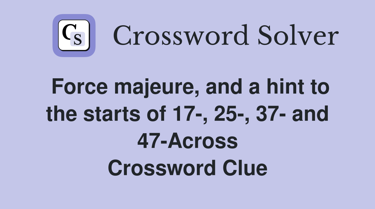 Force majeure and a hint to the starts of 17 25 37 and 47 Across