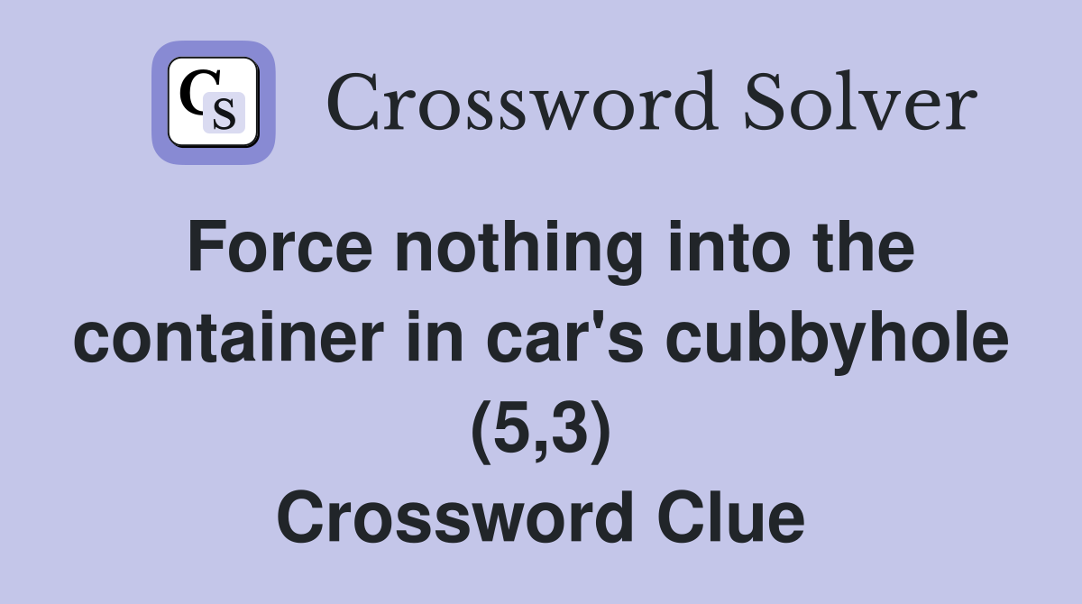 Force nothing into the container in car #39 s cubbyhole (5 3) Crossword
