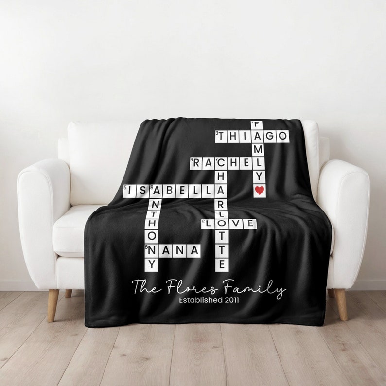 Personalized Crossword Puzzle Blanket Mothers Day Gift Crossword
