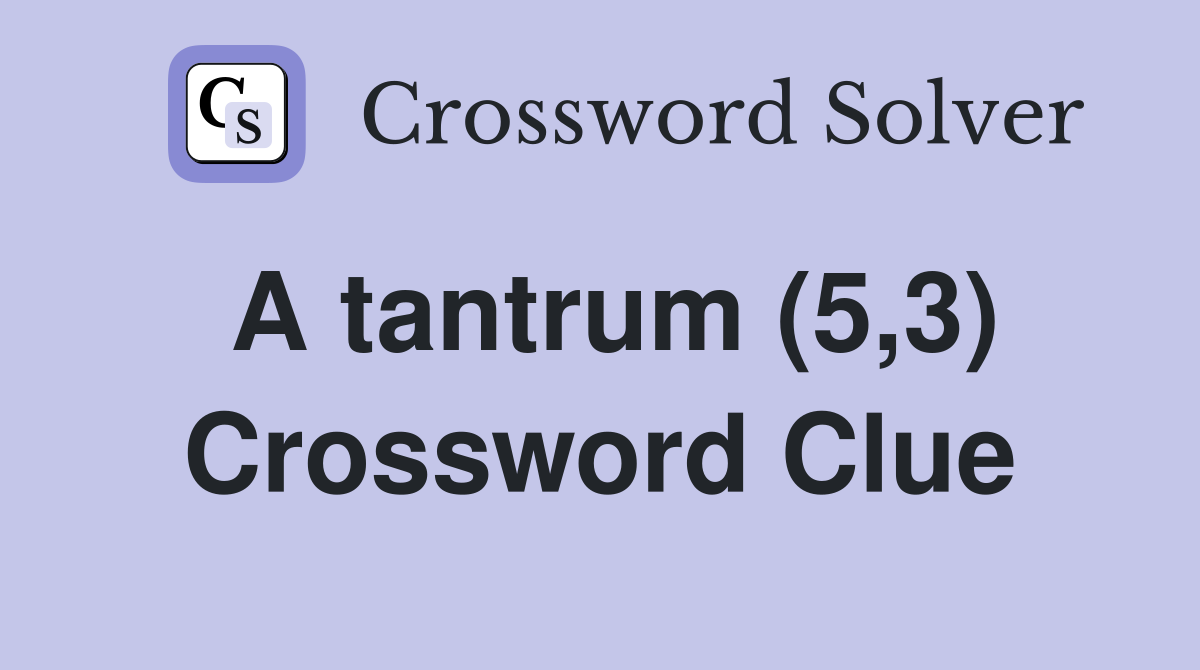 A tantrum (5 3) Crossword Clue Answers Crossword Solver
