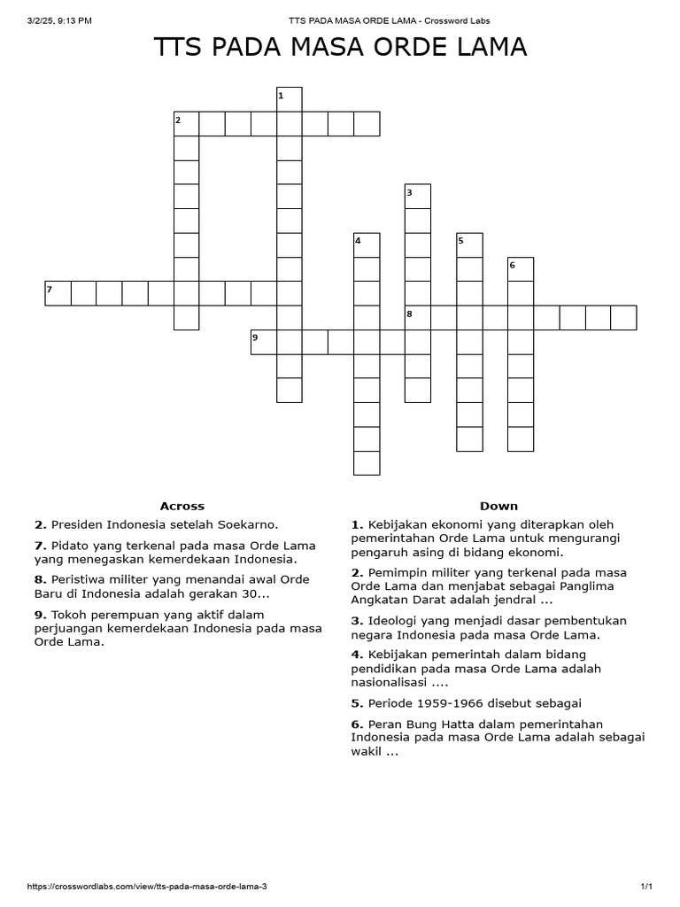TTS PADA MASA ORDE LAMA Crossword Labs PDF