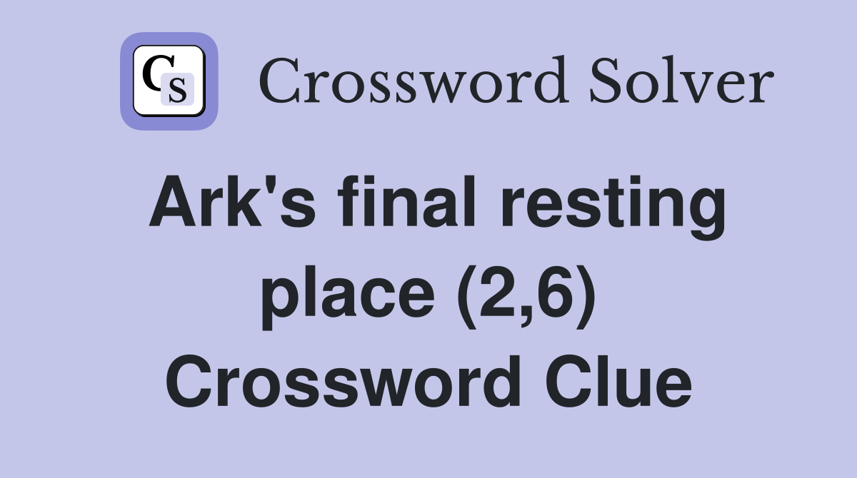 Ark #39 s final resting place (2 6) Crossword Clue Answers Crossword Solver
