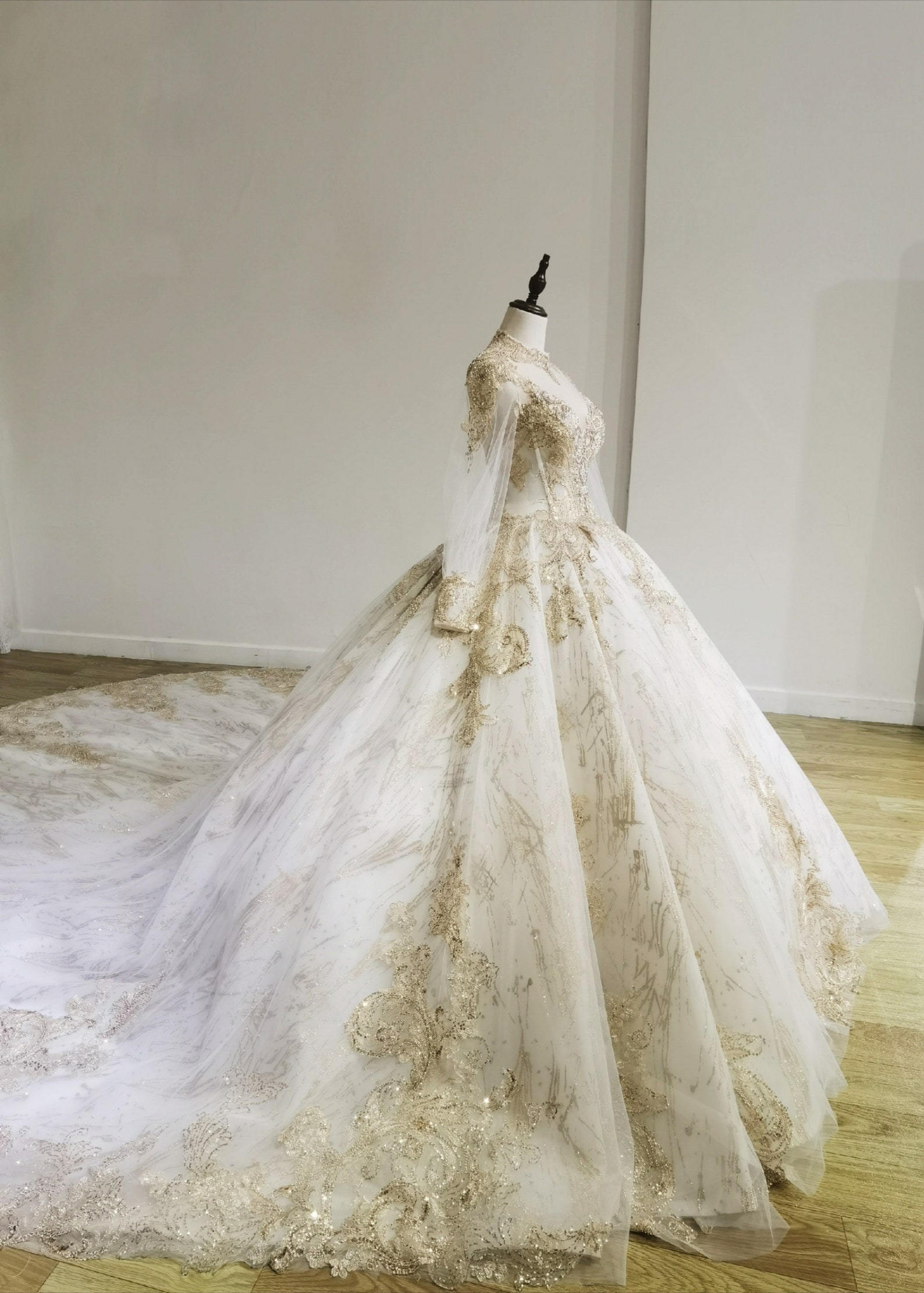 Luxury Beading Lace Embroidery Ivory Gold Vintage Long Sleeve Etsy