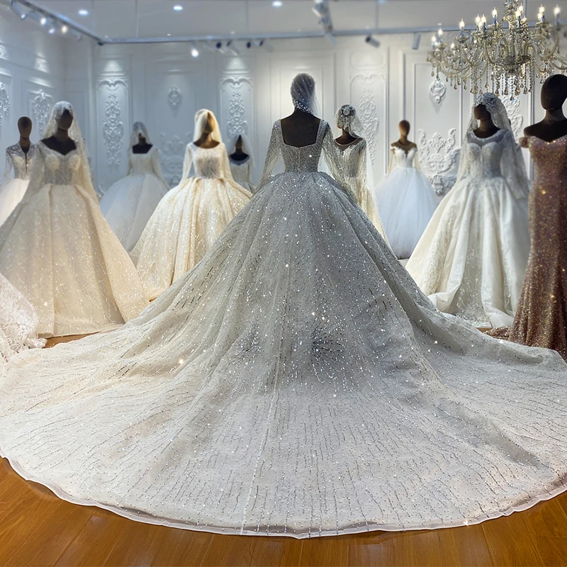 Ns4149 Latest Design Sparkling Pearl Lace Bridal Wedding Dress White