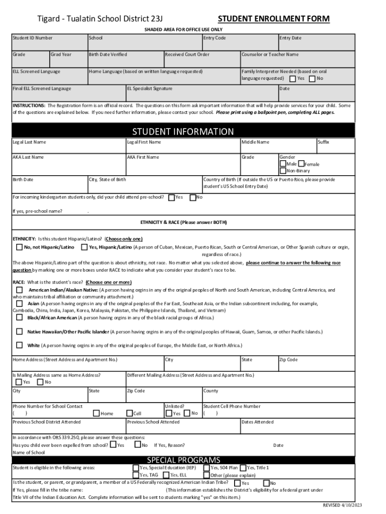 Fillable Online Enrolling Your Student Tigard Tualatin School