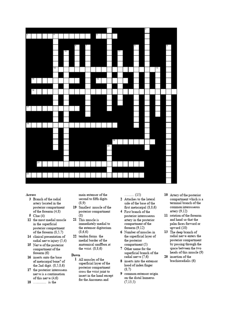 Forearm Posterior Compartment Crossword PDF Hand Human Anatomy
