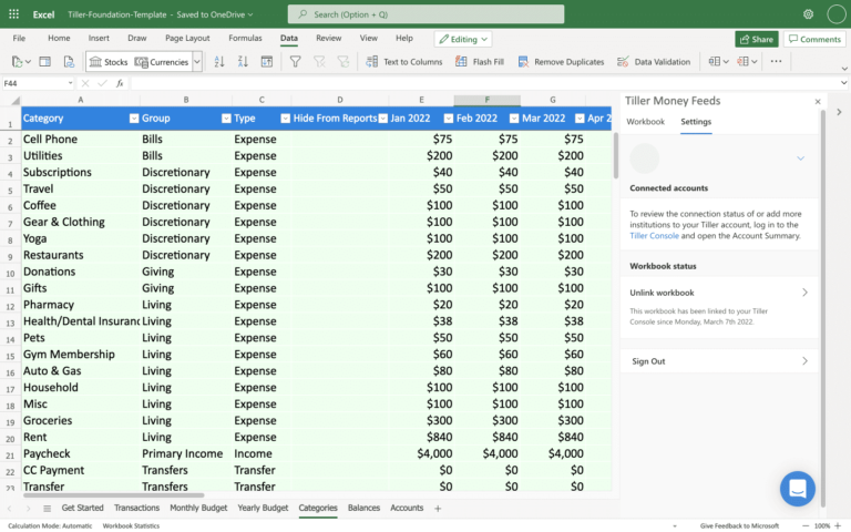 Tiller Foundation Template For Google Sheets Tiller