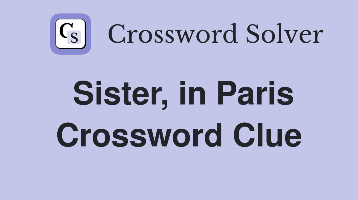 Sister in Paris Crossword Clue Answers Crossword Solver