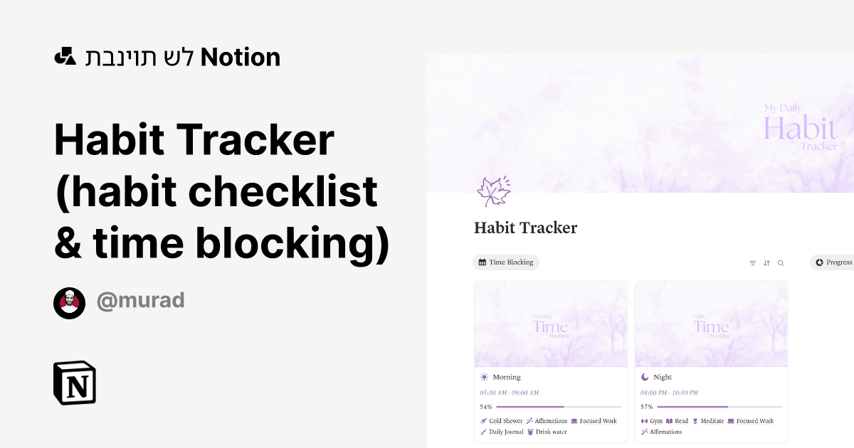 תבנית Habit Tracker (habit checklist time blocking) מאת Murad