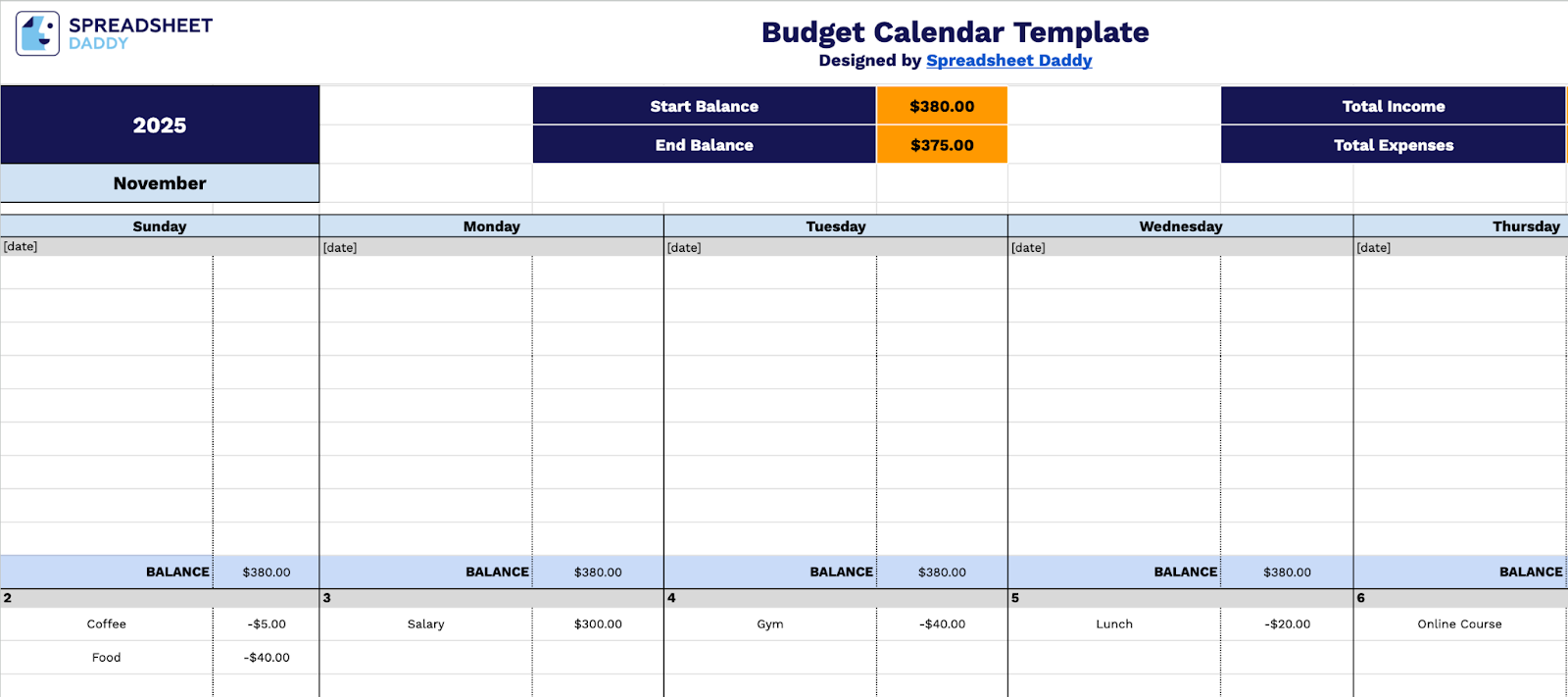 Free☝️ Budget Calendar Template (Google Sheets Excel PDF Downloads)